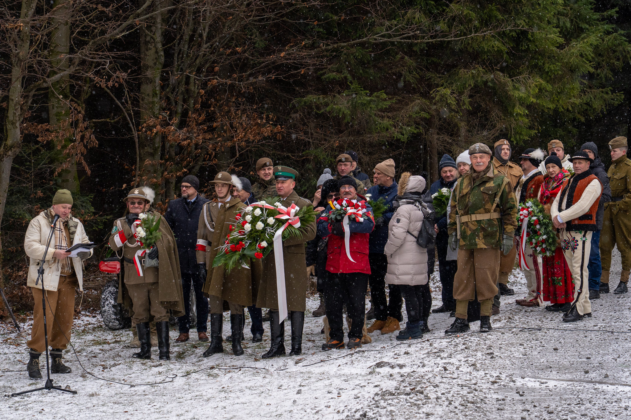 Uroczystości, które odbyły się 29 grudnia 2025 r. na historycznym zrzutowisku „Wilga” w Polankach, zgromadziły licznych mieszkańców i gości, pragnących oddać hołd bohaterom walk o wolność. Obchody rozpoczęły się punktualnie o godzinie 12:00 przy obelisku upamiętniającym wydarzenia sprzed ośmiu dekad. Wspólne odśpiewanie Mazurka Dąbrowskiego oraz odczytanie Apelu Pamięci stworzyły atmosferę głębokiej zadumy. Ważnym elementem było złożenie wieńców i zapalenie zniczy, będących symbolem naszej pamięci o żołnierzach AK. Obecność funkcjonariuszy Karpackiego Oddziału Straży Granicznej, nadała wydarzeniu wyjątkowej oprawy i szczególnego charakteru.
