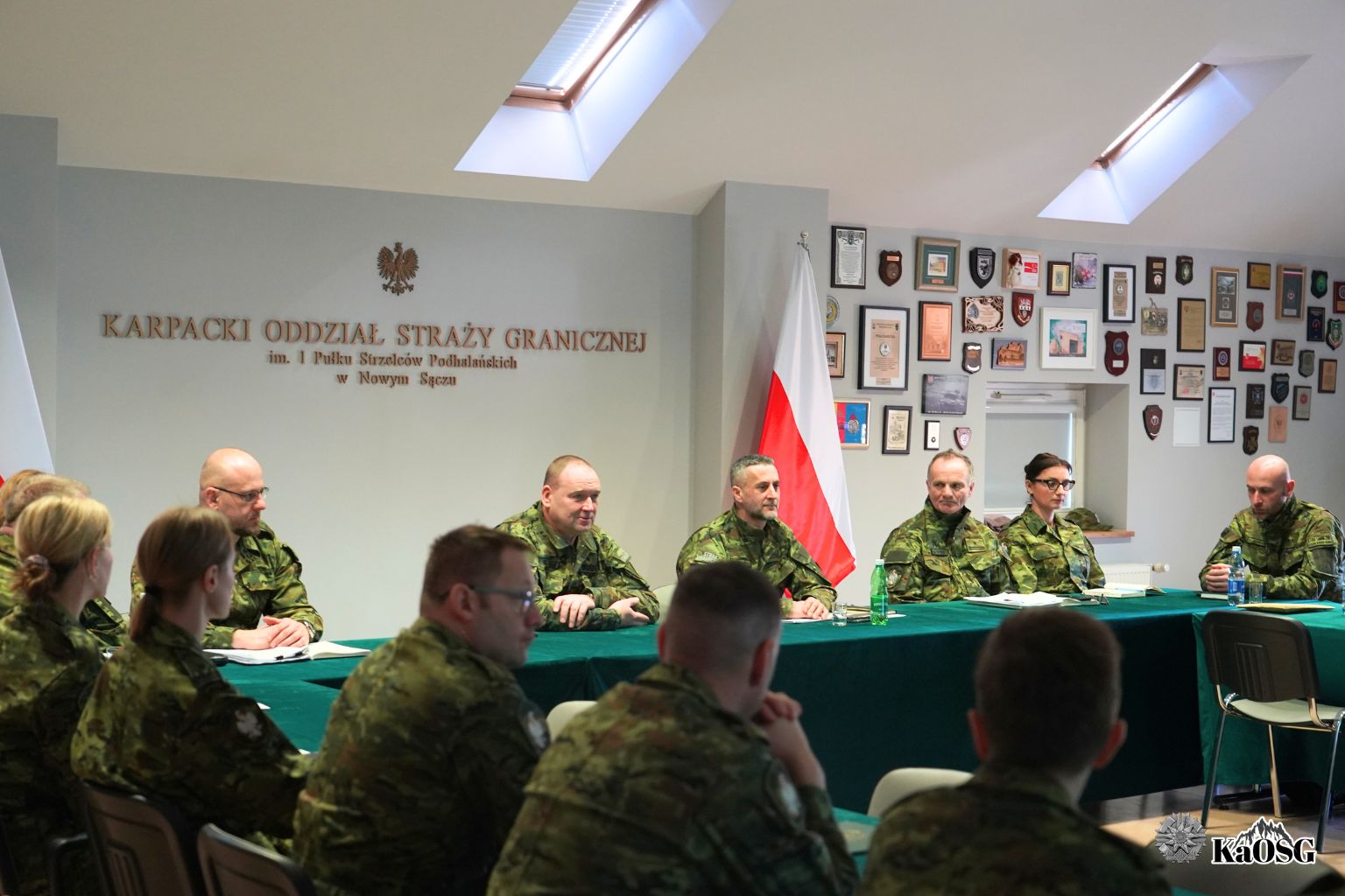 W siedzibie Karpackiego Oddziału Straży Granicznej im. 1 Pułku Strzelców Podhalańskich w Nowym Sączu, spotkali się przedstawiciele kadry kierowniczej pionu ds. cudzoziemców oraz koordynatorzy wyznaczeni do współpracy z Policją. W wydarzeniu, zorganizowanym przez Wydział do Spraw Cudzoziemców KaOSG wzięli także udział Komendant Oddziału - gen. bryg. SG Adam oraz płk SG Renata Obrzut - Zastępca Komendanta KaOSG.