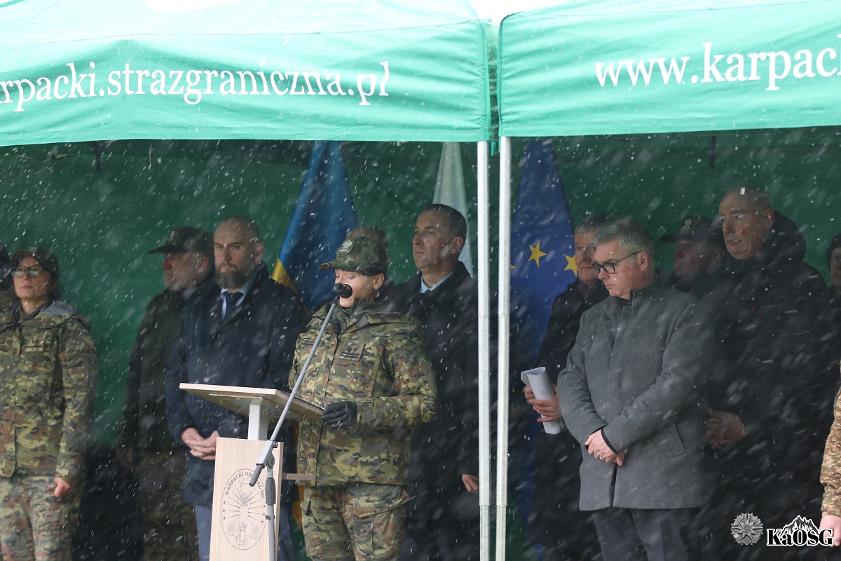 Uroczystość w Tęgoborzu zgromadziła przedstawicieli instytucji zaangażowanych w projekt, w tym m.in. przedstawicieli Ambasady Ukrainy w RP, reprezentantów Komisji Europejskiej oraz Departamentu Szkolenia Psów Służbowych Gwardii Narodowej Ukrainy, a także Karpackiego Oddziału Straży Granicznej w Nowym Sączu - Komendanta Oddziału reprezentowała podczas wydarzenia ppłk SG Dorota Kądziołka.