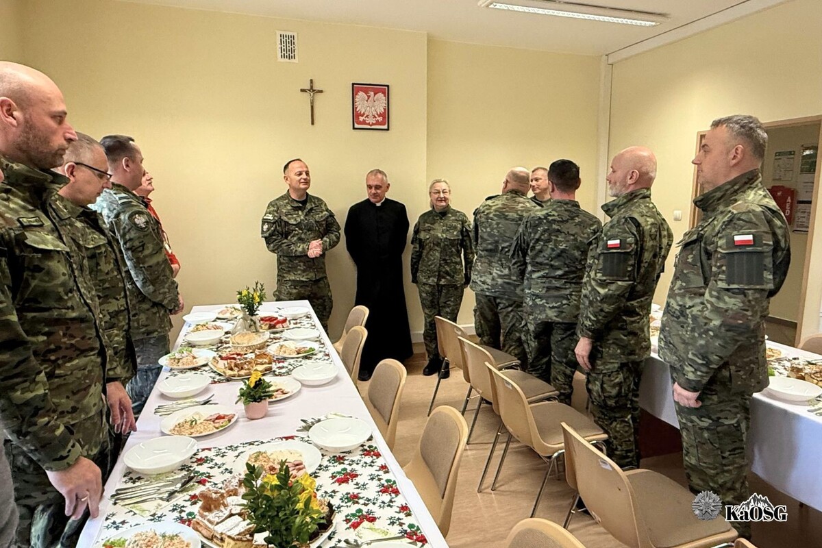Życzenia zdrowia, nadziei i miłości, wszystkim zebranym oraz ich rodzinom złożył Komendant Oddzialu gen. bryg. SG Adam Jopek. Następnie Kapelan KaOSG ks. kpt. SG Robert Młynarczyk pobłogosławił pokarmy i udzielił zgromadzonym błogosławieństwa na nadchodzący świąteczny czas.