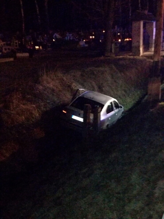 Funkcjonariusze na miejscu zastali uszkodzony samochód w przydrożnym rowie, z którego bezskutecznie próbował wydostać się kierowca pojazdu oraz pasażer –paroletnie dziecko.