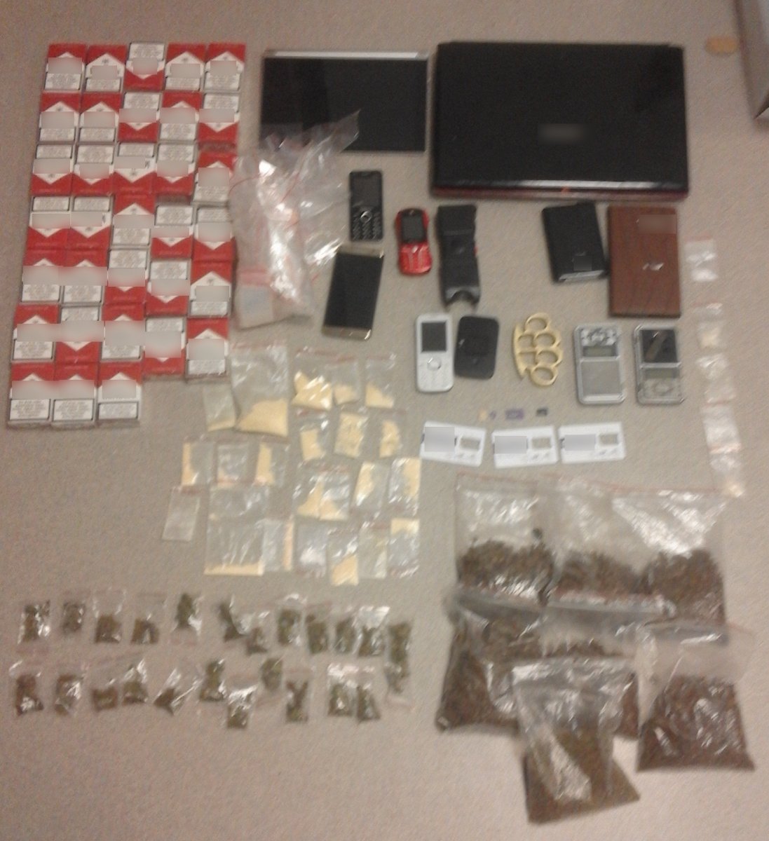 W trakcie przeszukania mieszkania funkcjonariusze zabezpieczyli ponad 430 gram marihuany, ponad 36 gram amfetaminy, dopalacze, a ponadto wyroby tytoniowe bez polskiej akcyzy, paralizator, telefony, laptopy oraz wagi elektroniczne i woreczki strunowe. W efekcie mężczyzna został zatrzymany i usłyszał zarzut posiadania znacznych ilości narkotyków, jak również ich udzielania osobie małoletniej.