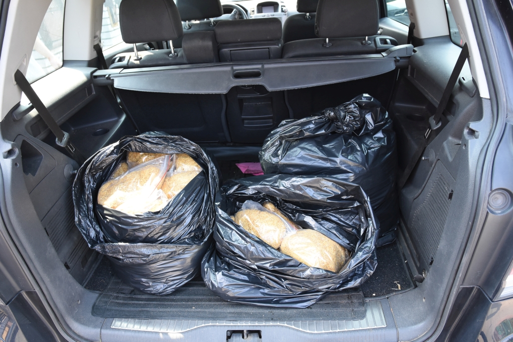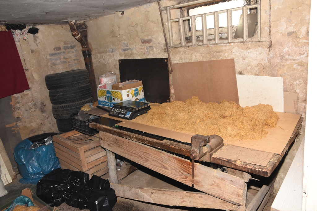 66 woreczków strunowych z zawartością krajanki tytoniowej o wadze ok. 0,5kg każdy oraz łącznej wadze 33 kg ujawniono w samochodzie osobowym typu kombi. Następnie, w wyniku przeszukania piwnicy domku jednorodzinnego, który wynajmował sprawca, znaleziono pakowaną w woreczki strunowe oraz pozostawioną luzem krajankę tytoniową o wadze 54,5 kg.