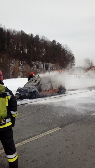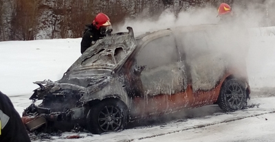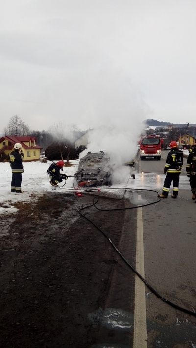 Wczoraj na drodze krajowej nr 28, w okolicach Nowego Sącza, doszło do samozapłonu samochodu. Osobowa mazda, którą poruszały się dwie osoby stanęła nagle w płomieniach. Pasażerowie samochodu próbowali samodzielnie ugasić pożar – niestety nieskutecznie. Do pomocy zatrzymały się dwa samochody. Chwilę później pojawił się patrol Straży Granicznej, który przejeżdżał w pobliżu.