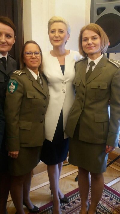 Pani Prezydentowa podziękowała za poświęcenie i ofiarność na służbie oraz życzyła przybyłym paniom, aby miały odwagę realizować swoje marzenia zawodowe oraz dotyczące życia osobistego.