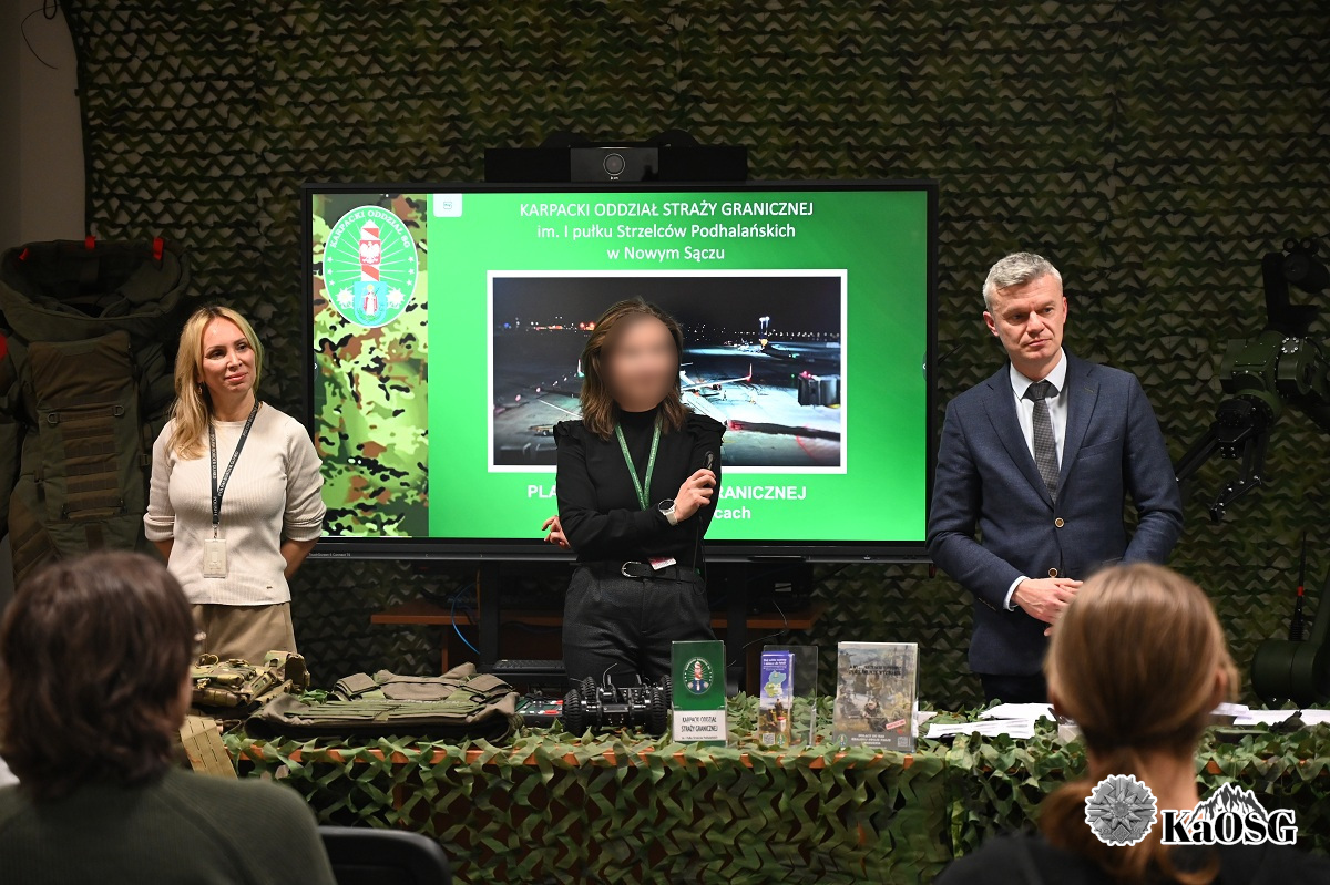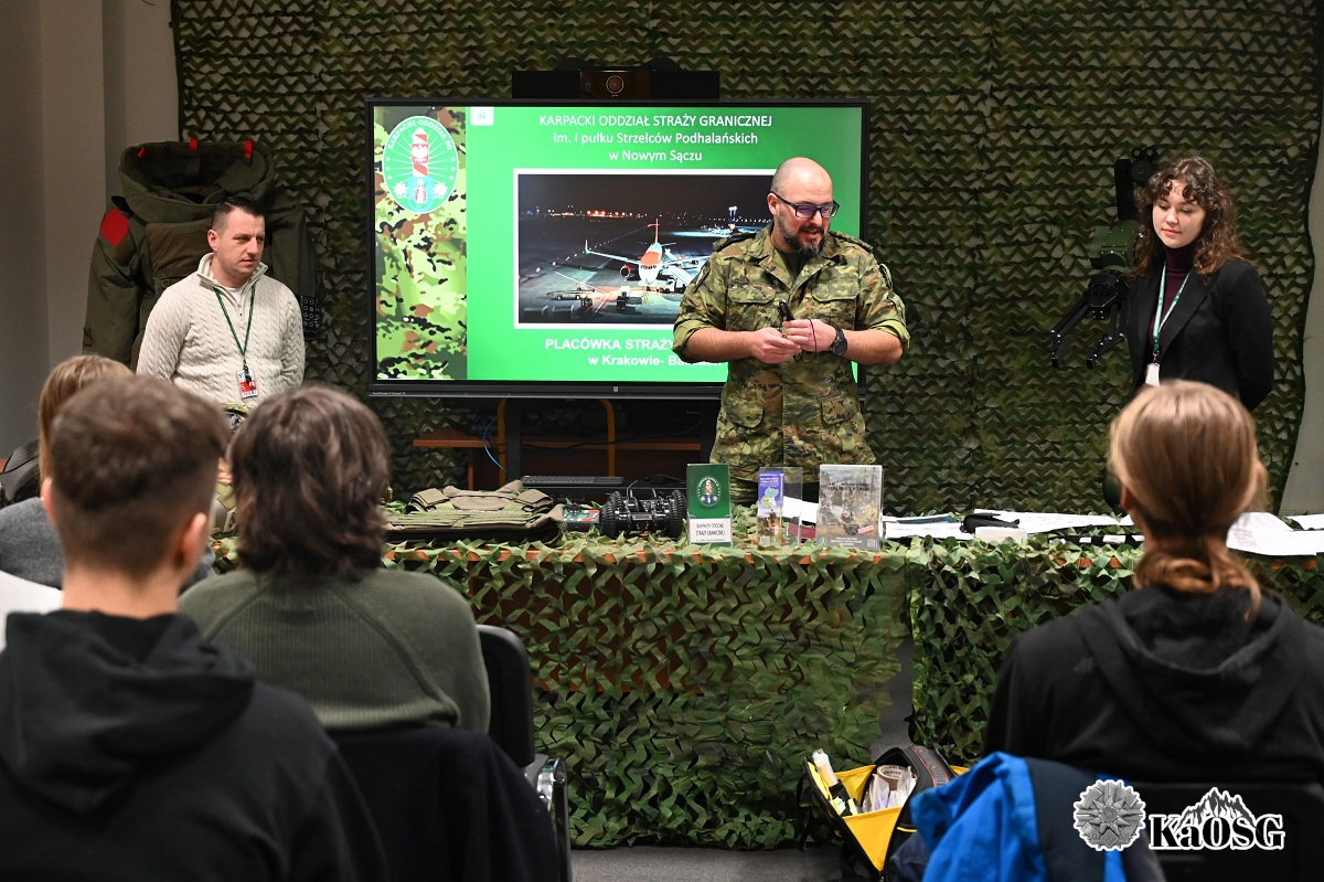 Studenci w trakcie spotkania mogli zapoznać się ze specyfiką służby pełnionej przez funkcjonariuszy w przejściu lotniczym w Krakowie – Balicach. Przedstawiono charakter i rodzaj wykonywanych czynności służbowych realizowanych przez funkcjonariuszy Zespołu Kontroli Ruchu Granicznego, Zespołu Nadzoru nad Kontrolą Bezpieczeństwa, Zespołu Interwencji Specjalnych oraz przewodnika psa służbowego w Straży Granicznej.