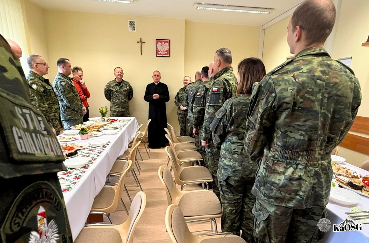 Życzenia zdrowia, nadziei i miłości, wszystkim zebranym oraz ich rodzinom złożył Komendant Oddzialu gen. bryg. SG Adam Jopek. Następnie Kapelan KaOSG ks. kpt. SG Robert Młynarczyk pobłogosławił pokarmy i udzielił zgromadzonym błogosławieństwa na nadchodzący świąteczny czas.