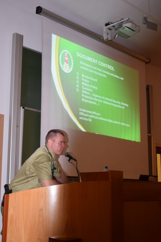 Dodatkowo podano uczestnikom dane kontaktowe do Placówki SG w Krakowie- Balicach oraz Wydziału Spraw Obywatelskich i Cudzoziemców przy Małopolskim Urzędzie Wojewódzkim w Krakowie. Jednocześnie wyjaśniono odpowiedzialność obydwu urzędów w zakresie spraw dotyczących pobytu cudzoziemców na terytorium RP.