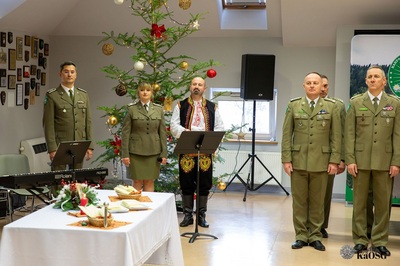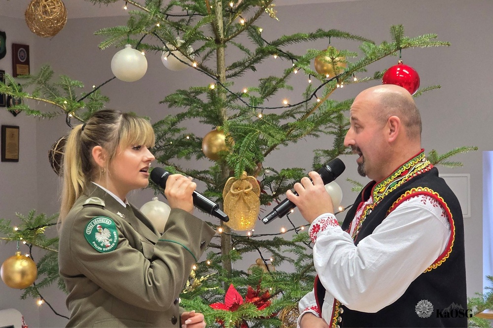 Po wspólnej modlitwie, której przewodniczył Kapelan KaOSG - kpt. SG Robert Młynarczyk, uczestnicy spotkania wysłuchali kolęd w wykonaniu solistki Orkiestry Reprezentacyjnej Straży Granicznej - sierż. SG Iwony Chruślickiej oraz chor. szt. SG Tomasza Jarosza, występującego w tradycyjnym stroju lachowskim. Następnie dzielono się opłatkiem i składano sobie świąteczno-noworoczne życzenia.