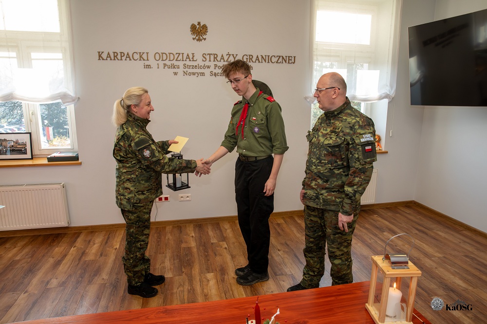 Z kolei 19 grudnia harcerz z Hufca ZHP w Nowym Sączu przekazał funkcjonariuszom KaOSG Betlejemskie Światło Pokoju - symbol nadziei, jedności i pokoju.