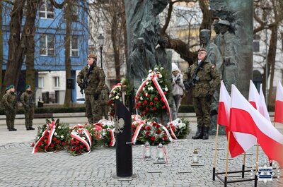Przed kieleckim Pomnikiem Armii Krajowej na Skwerze im. Stefana Żeromskiego, symboliczny znicz zapalili pogranicznicy z Placówki SG w Kielcach.