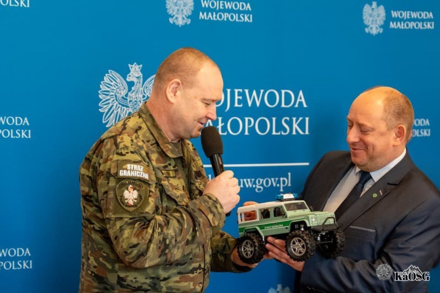 Podkreślono również rolę współdziałania z administracją rządową i samorządową, w szczególności z Wojewodą Małopolskim oraz władzami samorządu województwa i miasta Krakowa, w zakresie zarządzania kryzysowego, reagowania na sytuacje nadzwyczajne oraz planowania strategicznego. Przykładem takiej współpracy jest m.in. wczorajsze przekazanie Karpackiemu Oddziałowi Straży Granicznej, 6 nieoznakowanych pojazdów patrolowych z napędem 4x4, które będą wykorzystywane przez funkcjonariuszy w trakcie realizowanych każdego dnia zadań służbowych.