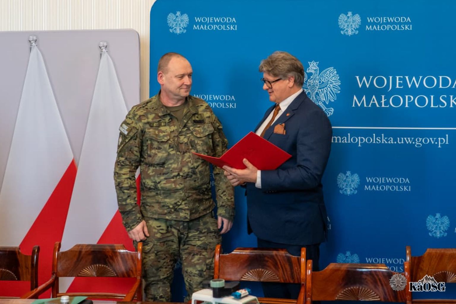 Wojewoda Małopolski podziękował funkcjonariuszom i pracownikom KaOSG za zaangażowanie, profesjonalizm i odpowiedzialną służbę na rzecz bezpieczeństwa mieszkańców regionu.