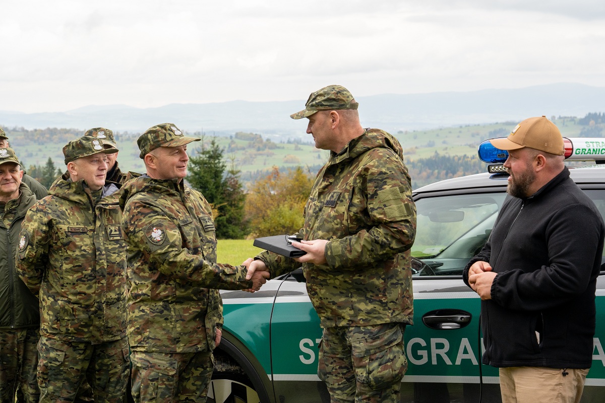 Podczas manewrów wykorzystano również oznakowany specjalistyczny pojazd z napędem elektrycznym 4x4, nabyty w ramach realizacji Projektu. Samochód został symbolicznie przekazany przez Komendanta Karpackiego Oddziału Straży Granicznej - gen. bryg. SG Adama Jopka, Komendantowi Placówki SG w Zakopanem – płk. SG Winicjuszowi Tęczarowi.