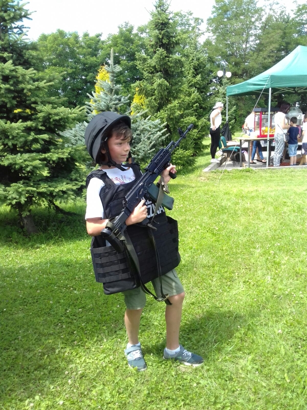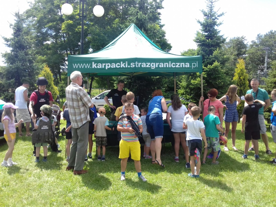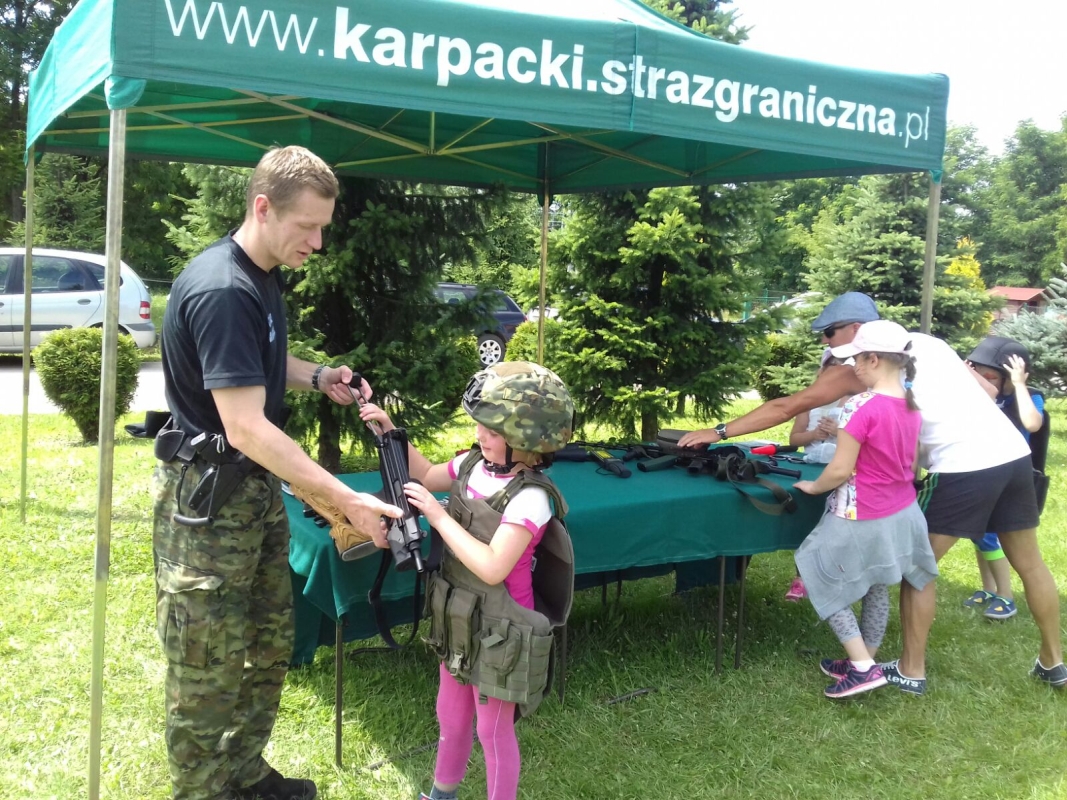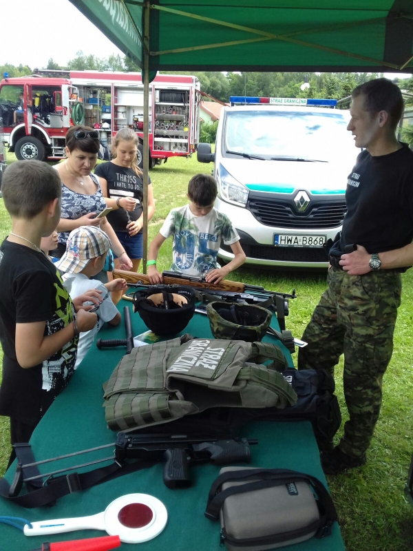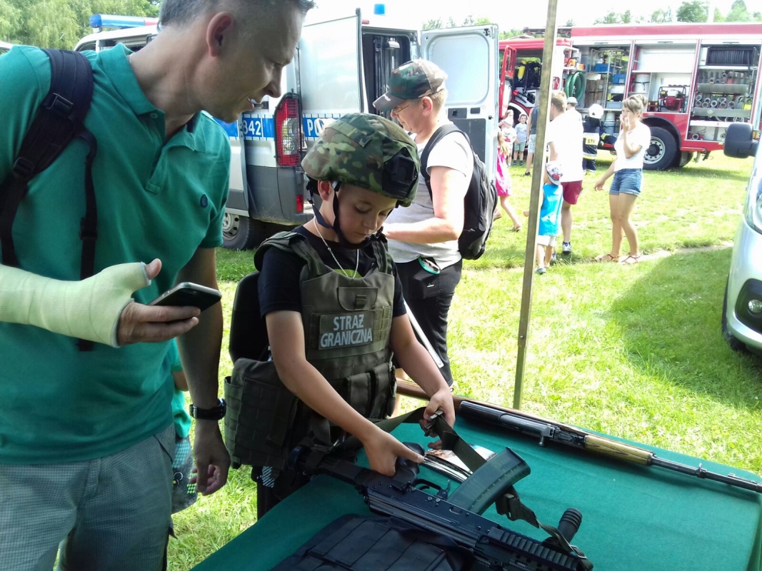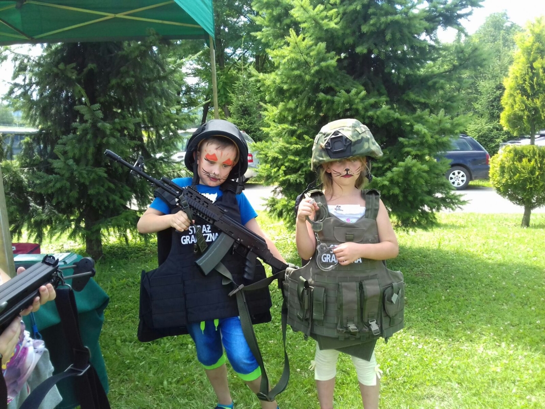 Funkcjonariusze Straży Granicznej, Policji i Straży Pożarnej zaprezentowali sprzęt, który na co dzień wykorzystywany jest w służbie, pozwalając dzieciom choć na chwilę spełnić ich marzenia o założeniu munduru.