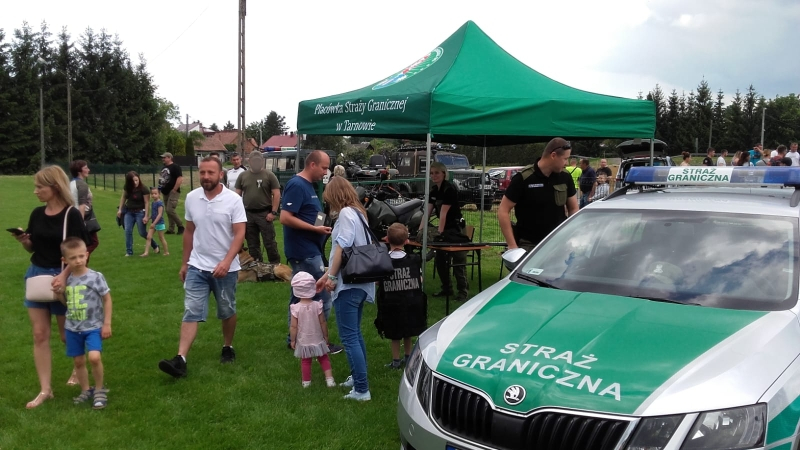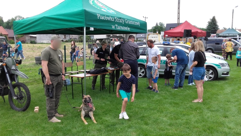 Strażnicy Graniczni z Tarnowa zaprezentowali sprzęt służbowy podczas pikniku w Skrzyszowie. Dzieci miały również możliwość zobaczyć tam pokaz wyszkolenia psa służbowego. Przewodnik psa służbowego z Wydziału Zabezpieczenia Działań KaOSG, chętnie odpowiadał na liczne pytania zadawane przez najmłodszych.