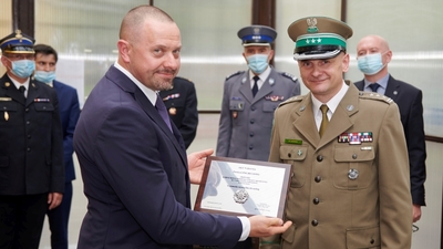 Na zakończenie uroczystości Państwowy Inspektor Sanitarny MSWiA na obszarze województwa małopolskiego - w uznaniu szczególnych zasług - został uhonorowany przez płk. SG Stanisława Laciugę Odznaką Karpackiego Oddziału Straży Granicznej im. 1 Pułku Strzelców Podhalańskich w Nowym Sączu.