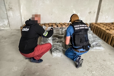 Funkcjonariusze Karpackiego Oddziału Straży Granicznej wspólnie z policjantami z Zarządu w Krakowie Centralnego Biura Śledczego Policji ustalili, że do Polski zmierza transport narkotyków z Hiszpanii. Funkcjonariusze przeprowadzili wspólne działania i przeszukali halę magazynową znajdującą się na terenie powiatu krakowskiego. W tym czasie trwał rozładunek palet z samochodu ciężarowego, na których znajdowały się kartony z hiszpańskim winem. Pomiędzy paletami funkcjonariusze znaleźli 44 kilogramy marihuany, zapakowane próżniowo w torbach foliowych. Z takiej ilości narkotyku można by przygotować blisko 44 tysiące działek dilerskich, a szacunkowa czarnorynkowa wartość przejętych środków odurzających to blisko 850 tysięcy złotych.