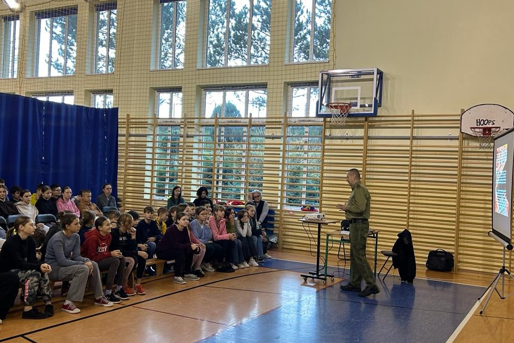 Funkcjonariusz SG został zaproszony przez dyrekcję Zespołu Szkolno-Przedszkolnego z miejscowości Rokiciny Podhalańskie, do przeprowadzenia prelekcji : ,,Narkotyki - zastanów się czy warto?” dla uczniów szkoły.