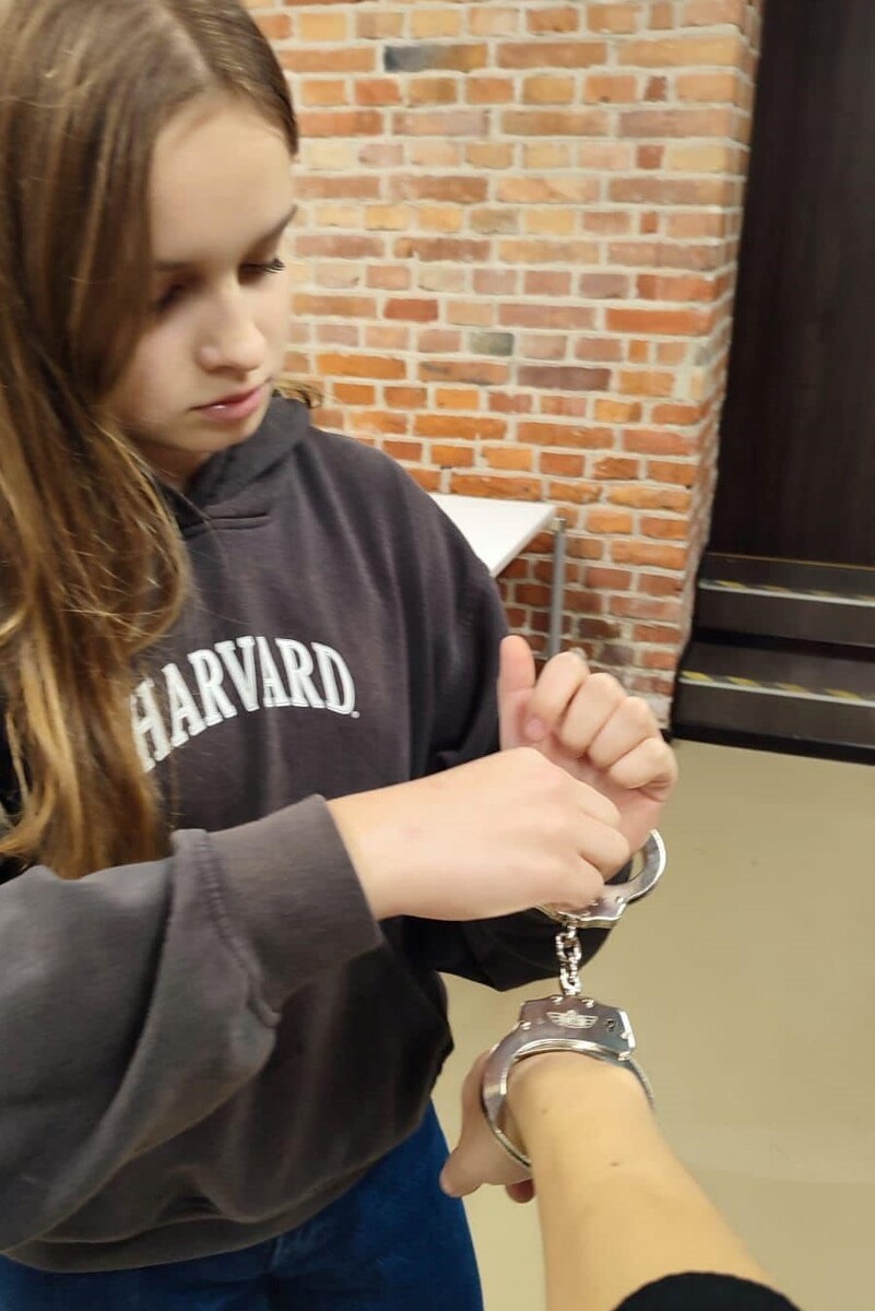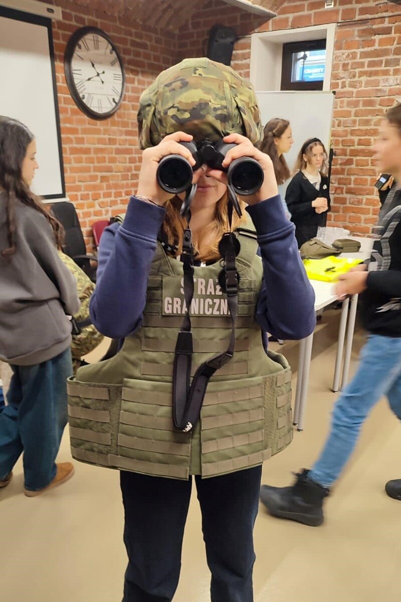 Uczniowie chłonęli wiadomości przekazywane przez funkcjonariuszy, a możliwość dotknięcia broni, założenia kamizelki kuloodpornej, czy użycia lornetki, sprawiła im wielką frajdę.