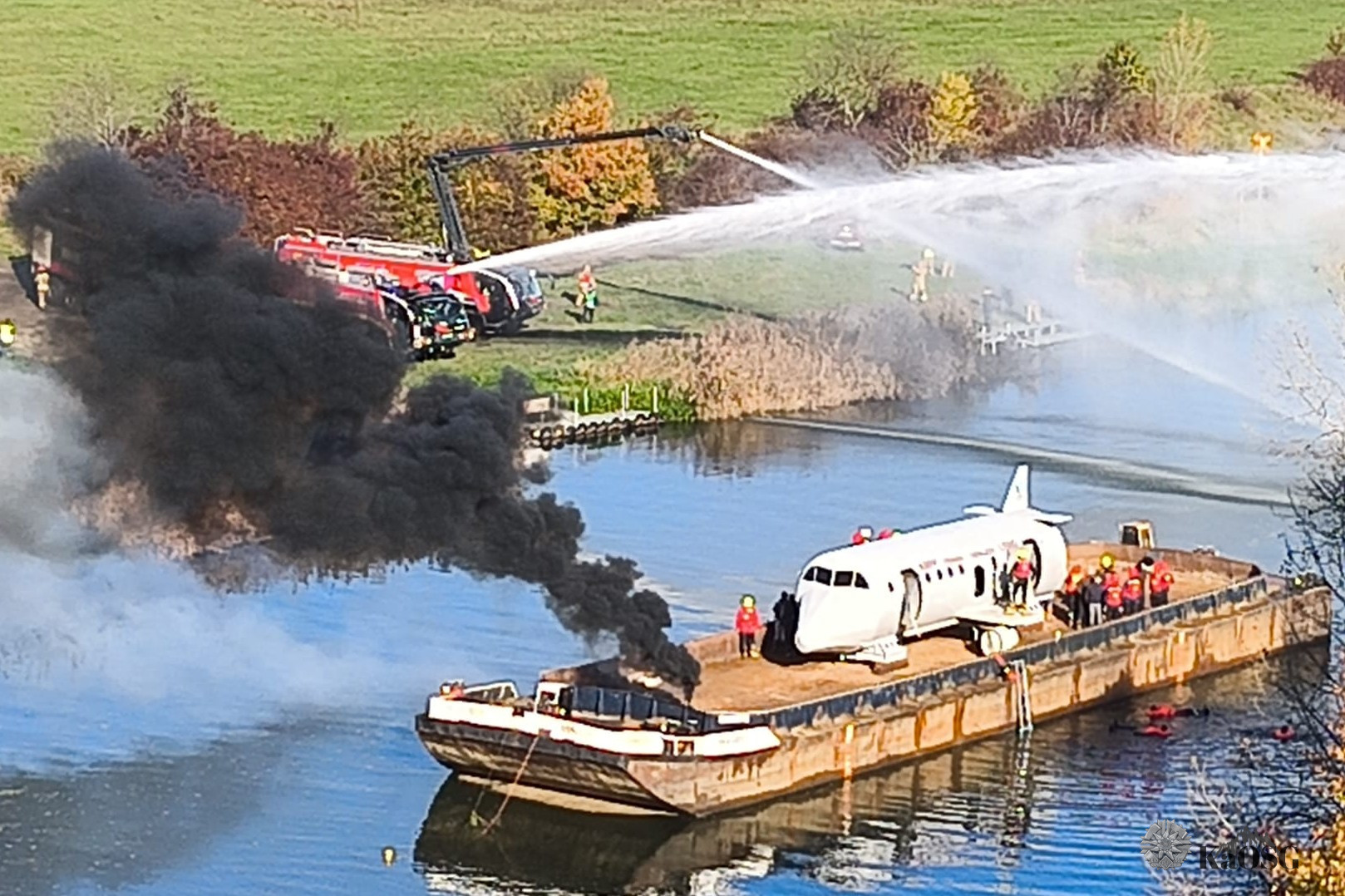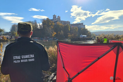 Współpraca ze służbami ratowniczymi nie ogranicza się jednak tylko do działań szkoleniowych na lądzie. 23 października 2025 r. funkcjonariusze Placówki Straży Granicznej w Krakowie-Balicach uczestniczyli w kompleksowych ćwiczeniach ratownictwa lotniskowego, które odbyły się na Wiśle w rejonie Tyńca. Celem przedsięwzięcia była weryfikacja procedur działania w przypadku wypadku lotniczego poza terenem lotniska – tym razem na akwenie wodnym.