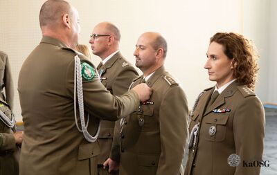 - Okres międzywojenny to tylko 17 lat, podczas których zrobiono bardzo dużo dla rozwoju Rzeczypospolitej Polskiej, dla scalania tych ziem, na których społeczeństwo naszego Państwa funkcjonowało – powiedział Komendant KaOSG. - Proszę pamiętać o biografiach tych ludzi, którzy to sobie wymyślili, wymarzyli i wywalczyli. Od 1918 do 1922 roku byliśmy w stanie wojny o wytyczenie granic RP na każdym odcinku i my jako spadkobiercy formacji granicznych szczególnie powinniśmy o tym pamiętać – dodał Generał.