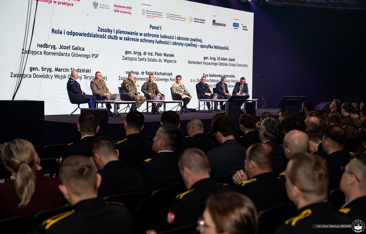 W pierwszym z paneli zatytułowanym „Zasoby i planowanie w ochronie ludności i obronie cywilnej. Rola i odpowiedzialność służb w zakresie ochrony ludności i obrony cywilnej” głos zabrali : Zastępca Komendanta Głównego Policji - nadinsp. dr Rafał Kochańczyk, Zastępca Komendanta Głównego Państwowej Straży Pożarnej - nadbryg. Józef Galica, Zastępca Dowódcy Wojsk Obrony Terytorialnej - gen. bryg. Marcin Siudziński, Zastępca Szefa Sztabu ds. Wsparcia - gen. bryg. dr inż. Piotr Waniek oraz p.o. Dyrektora Oddziału Telewizji Polskiej S.A. w likwidacji Oddział w Krakowie - Ewa Godlewska-Jeneralska.
