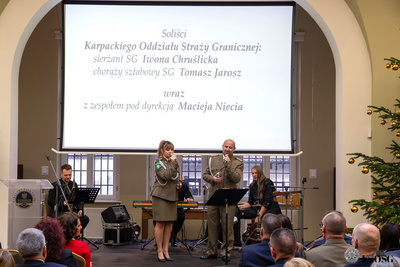 Wyjątkowej świątecznej atmosfery uroczystości nadał występ solistów Karpackiego Oddziału Straży Granicznej sierż. SG Iwony Chruślickiej i chor. szt. SG Tomasza Jarosza. Kolędy w ich wykonaniu towarzyszyły gościom