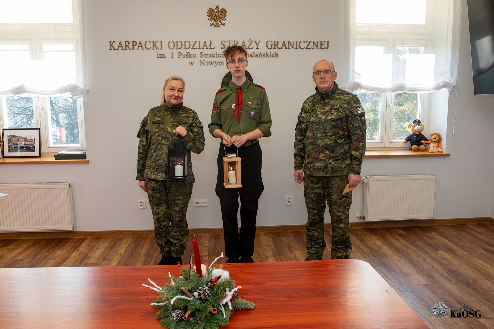 Z kolei 19 grudnia harcerz z Hufca ZHP w Nowym Sączu przekazał funkcjonariuszom KaOSG Betlejemskie Światło Pokoju - symbol nadziei, jedności i pokoju.