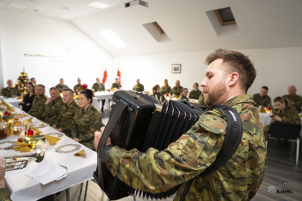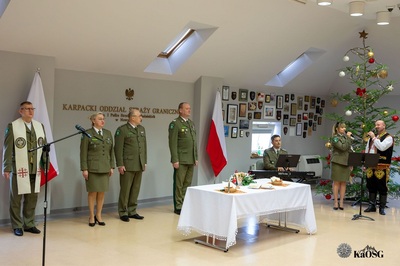 Po wspólnej modlitwie, której przewodniczył Kapelan KaOSG - kpt. SG Robert Młynarczyk, uczestnicy spotkania wysłuchali kolęd w wykonaniu solistki Orkiestry Reprezentacyjnej Straży Granicznej - sierż. SG Iwony Chruślickiej oraz chor. szt. SG Tomasza Jarosza, występującego w tradycyjnym stroju lachowskim. Następnie dzielono się opłatkiem i składano sobie świąteczno-noworoczne życzenia.
