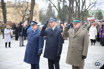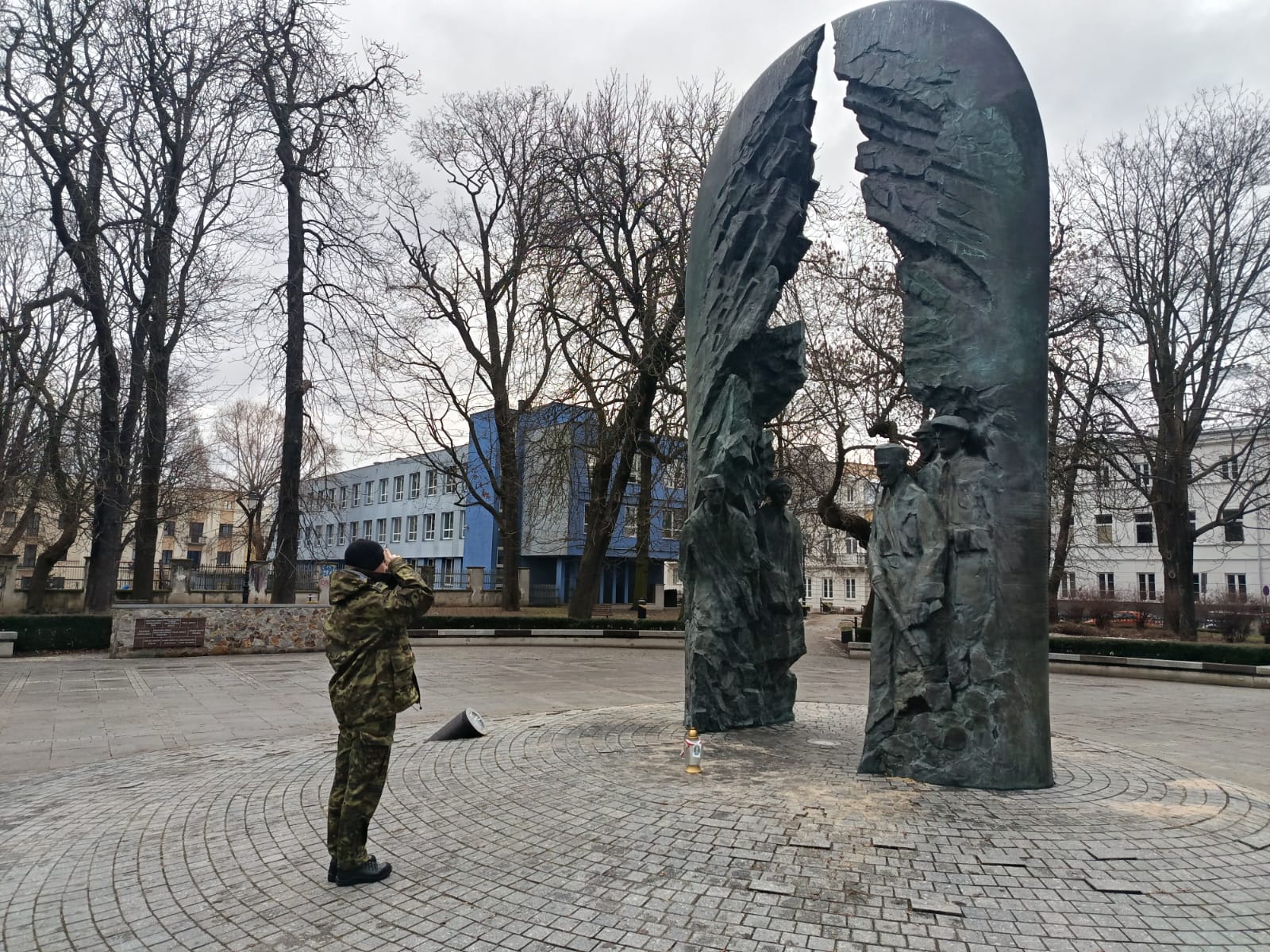 Przed kieleckim Pomnikiem Armii Krajowej na Skwerze im. Stefana Żeromskiego, symboliczny znicz zapalili pogranicznicy z Placówki SG w Kielcach.