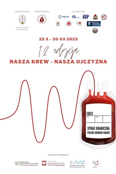 We wtorek 21 listopada w godzinach od 8.30 do 13.00 - w Karpackim Oddziale Straży Granicznej planowane jest przeprowadzenie akcji honorowego oddawania krwi w ramach ogólnopolskiego projektu pod hasłem „NASZA KREW - NASZA OJCZYZNA”. Ta ogólnopolska zbiórka krwi od lat stanowi poważny wkład w ratowanie życia ludzkiego, poprzez łagodzenie deficytu krwi w placówkach leczniczych i bankach krwi.