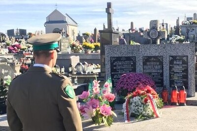 Komendant Placówki SG w Kielcach - ppłk SG Daniel Wojtaszkiewicz, złożył kwiaty na grobie patrona Placówki.
